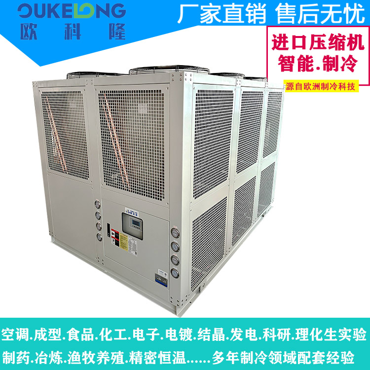 歐科隆制冷80HP風冷箱式冷水機是一款大功率工業制冷設備,專為重型制造和連續生產場景設計。該機型采用一體化箱式結構,集成高效風冷散熱系統,突破性實現80匹(約240kW)制冷量,無需外接冷卻塔即可滿足超大規模冷卻需求,是能源、化工、冶金等行業的理想選擇。