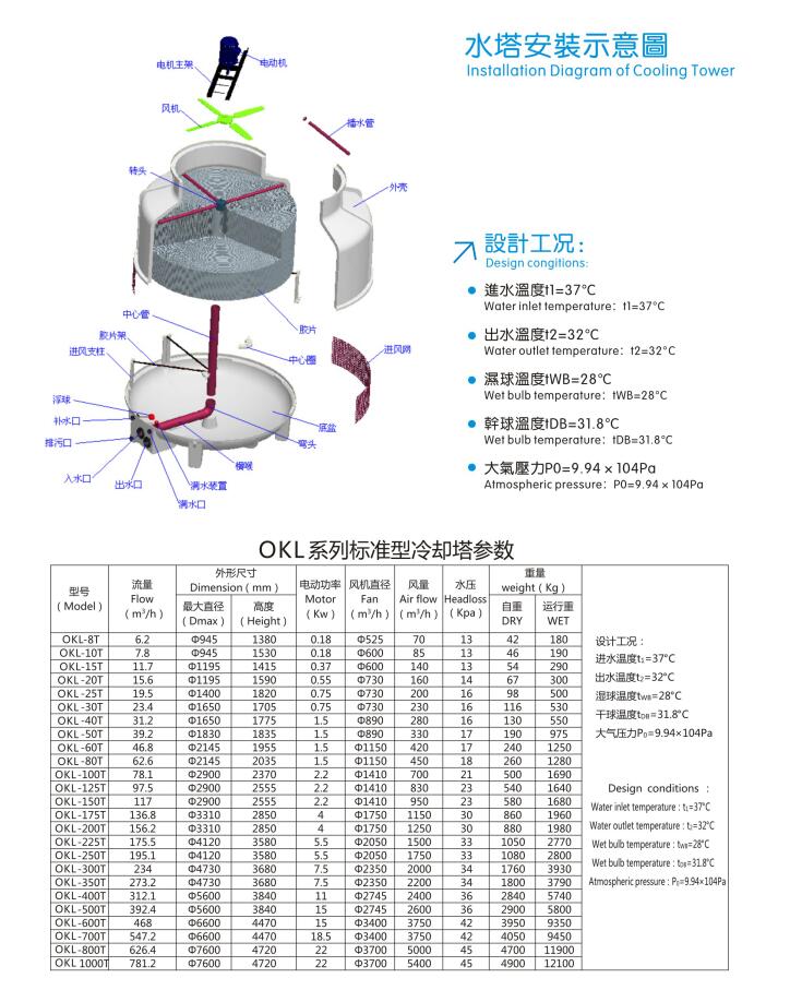 ● 采用最新技術設計,漂水少、噪音低、易保養,冷卻塔構件精心制作,堅固耐用,冷卻效果良好;